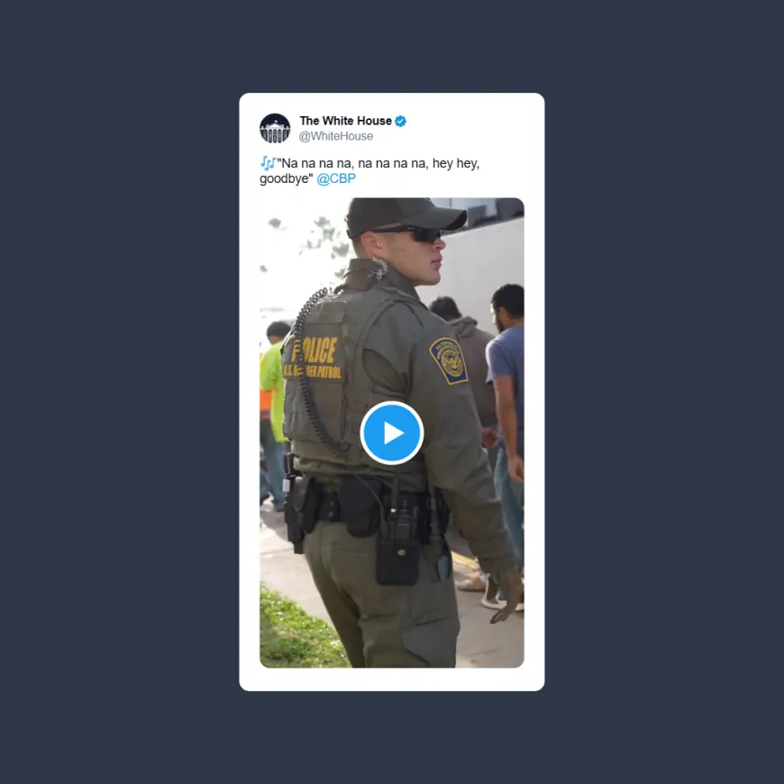 Bijela kuća objavila je video koji prikazuje deportaciju ljudi za koje se smatra da su migrirali ilegalnim putem, a u pozadini svira pjesma "Na na na na, na na na na, hej hej, doviđenja".