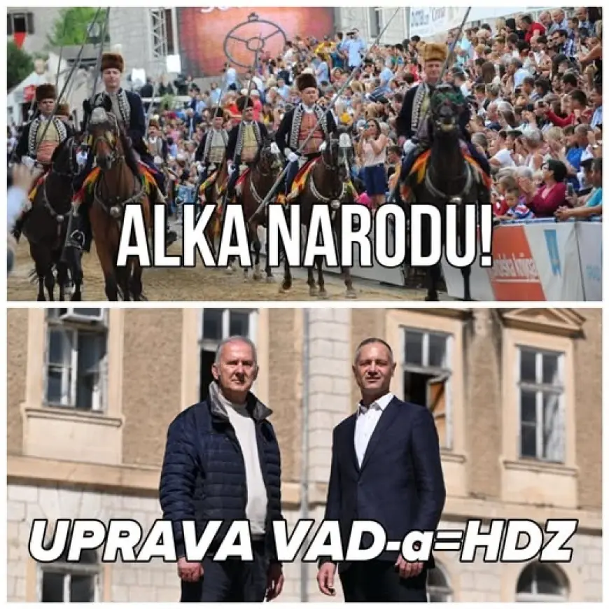 “Maske su pale! Uprava Viteškog alkarskog društva (VAD), dokazano je najodanija podružnica HDZ-a u Hrvatskoj. Kandidature člana Uprave Igora Vidaline za gradonačelnika Sinja te predsjednika VAD-a Stipe Jukića za Gradsko vijeće jasno su pokazale pravo lice ove priče. Potvrdilo se ono što godinama govorim – da su HDZ i VAD jedno te isto.