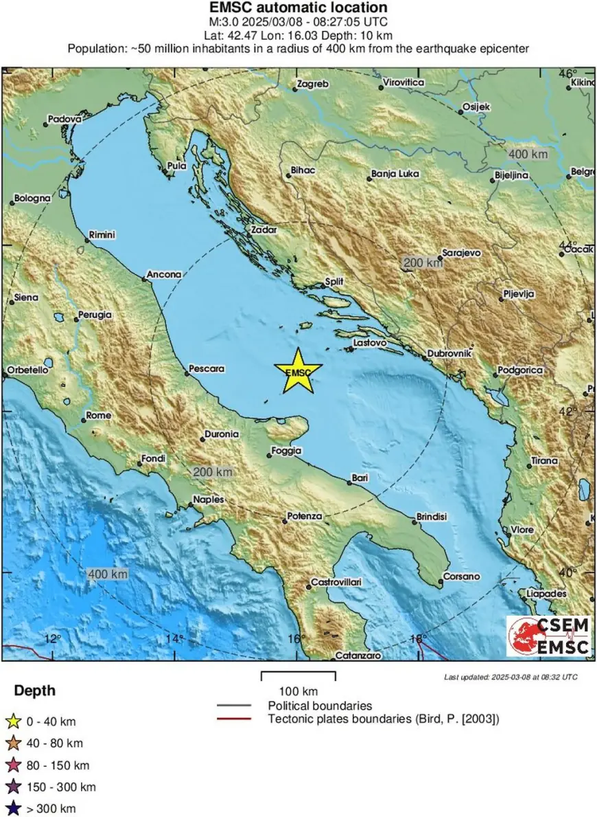 U Jadranskom moru registriran je potres magnitude 3,3, javlja EMSC.