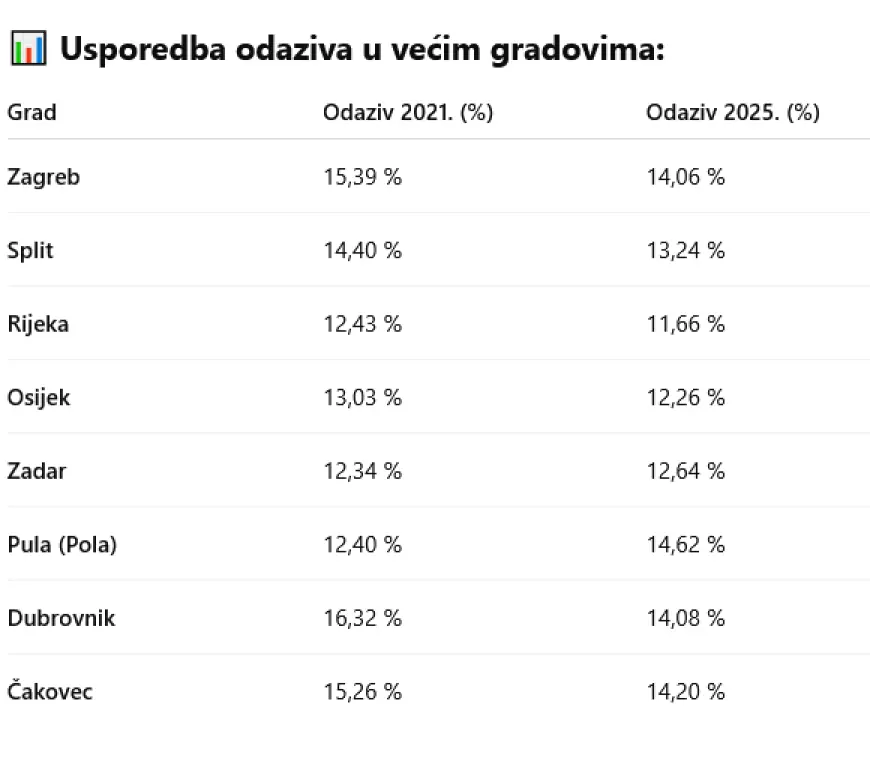 Donosimo tablicu izlaznosti po gradovima. U Zagrebu manja nego prije 4 godine